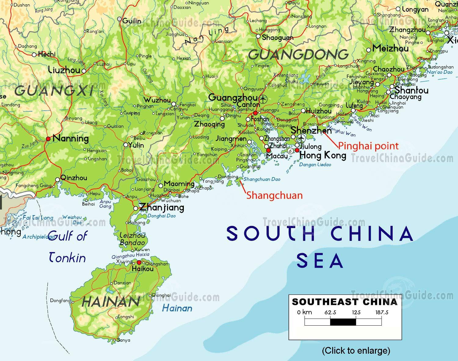 چین جنوبی نقشه. نقشه جنوب چین (آسیای شرقی آسیا) به چاپ. نقشه جنوب چین (اروپا - آسیا) برای دانلود.